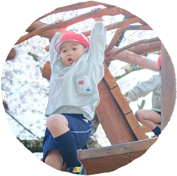 - 自然の中で風や光を感じながら、思いきり体を動かすことで、子どもたちの体はのびのびと育ちます。五感をひらき、感覚を通して得た刺激が、からだと心の健やかな成長につながっていきます。